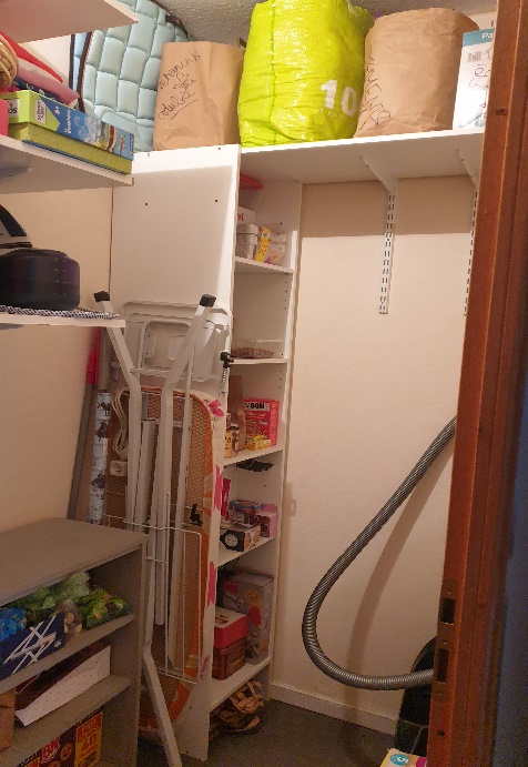 Maintenant, j’ai accès à ma colonne garde-manger et tout est à portée de main sur les étagères. Tout est facile à trouver ! Mon cagibi est enfin devenu pratique et ne sert plus de débarras.